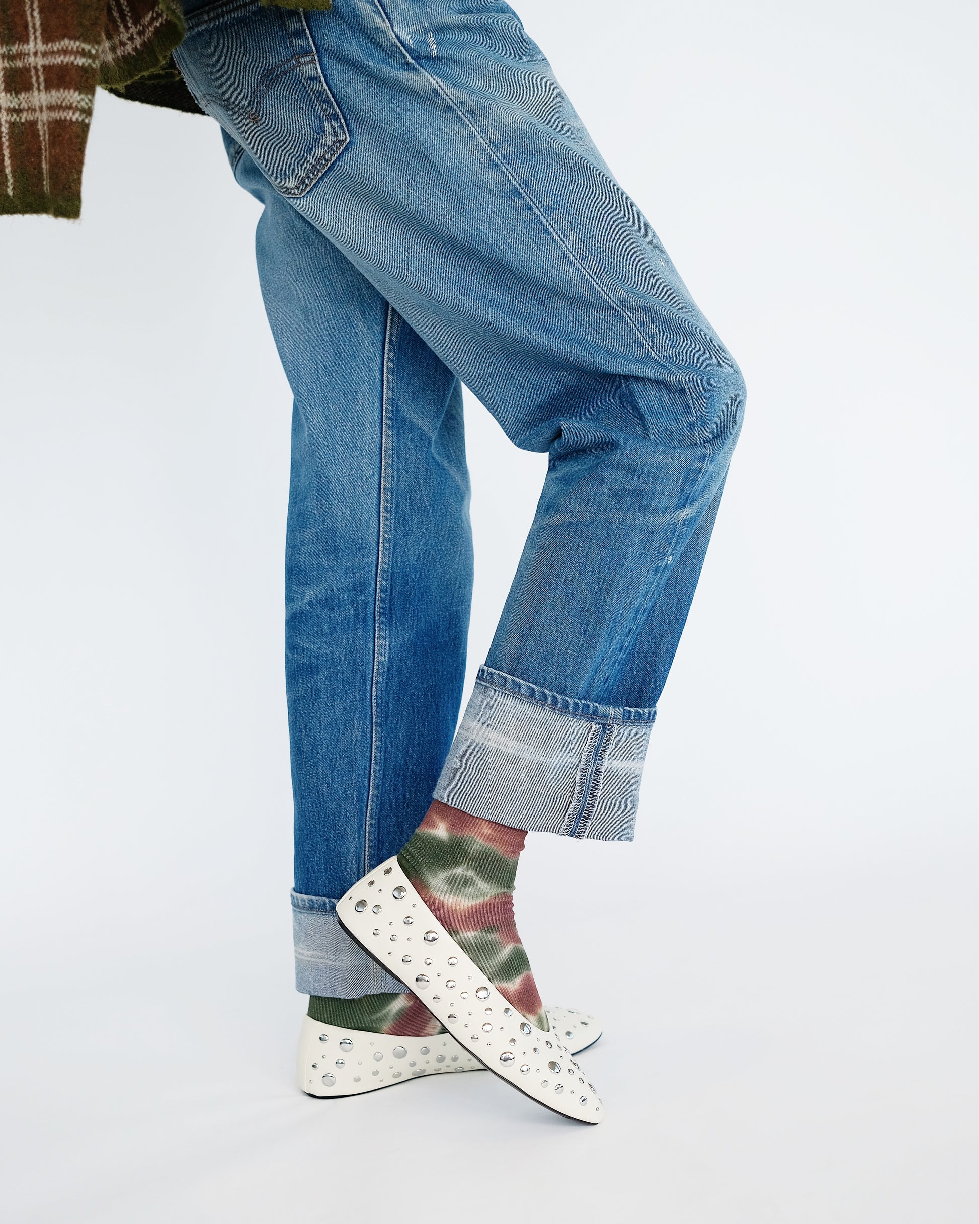 Flirty and fun - this scallop edge rib knit sock is lightweight and allows for styling straight up or as a turn cuff. 70% Cotton 27% Nylon 3% Spandex
